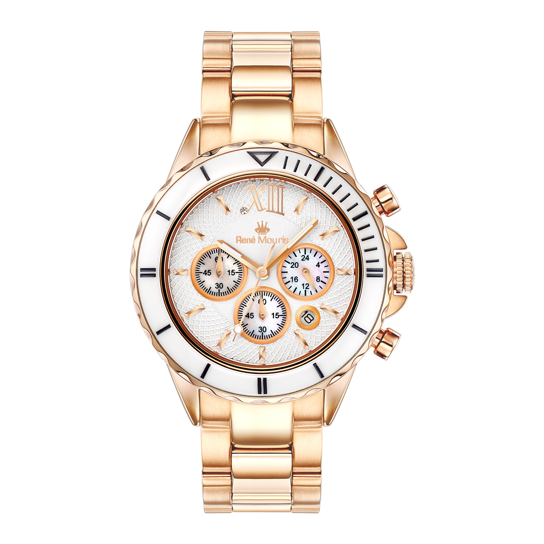CARACTÉRISTIQUES SUPPLÉMENTAIRES | Chronographe 60 secondes, chronographe 60 minutes, guichet de date, sous-cadran 24 heures, sous-cadran en nacre, lunette en céramique |
